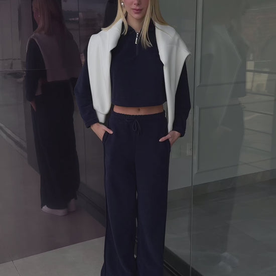 Long Sleeve Cropped Boucle Navy Blue